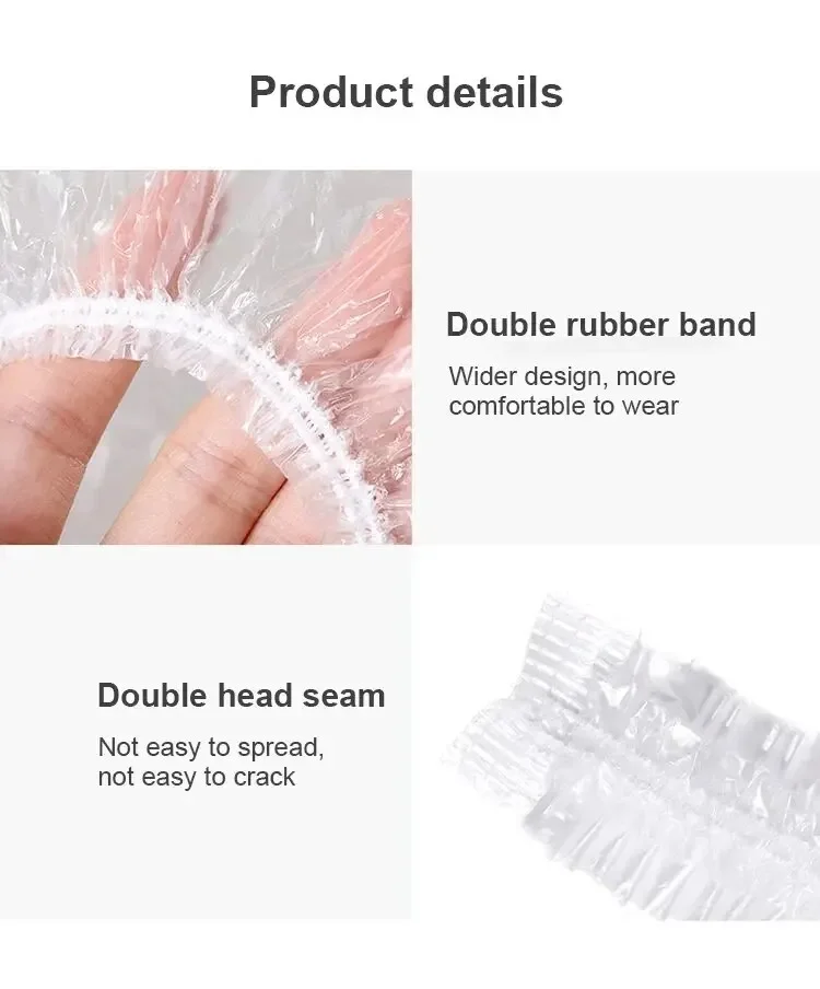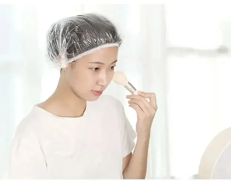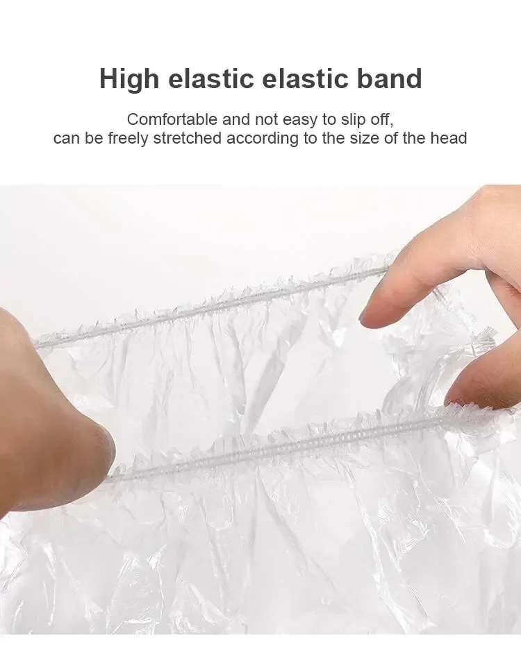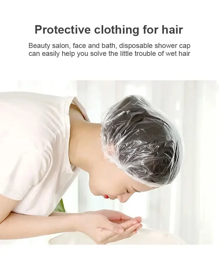 100/200 Pcs Disposable Shower Cap for Extension Clear Beauty Hair Hat Shower Cap Elastic Mesh Shape Waterproof Bath Hat