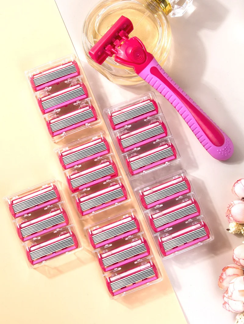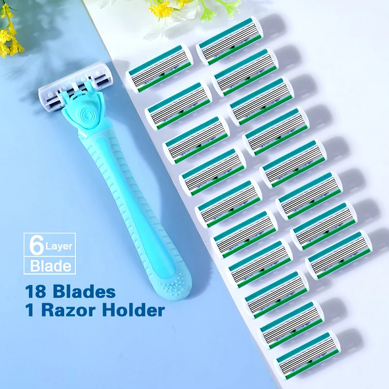 1 Handle + 18 Blades/ Women Manual Safety Razor 6-Layer Stainless Steel Hair Removal Shaving Blades Replaceable Shaver Head